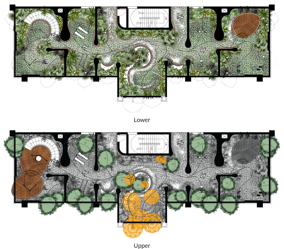 Carefully crafted as a cloud wonderland in the sky for children and parents alike, Cloud Maze is filled with interactive, fun and educational play areas for children of all ages to enhance their cognitive, tactile and physical skill. The garden is defined by white clouds and encased in a giant bird that has taken flight from the rainforest below; elements of public sculptures that will define the building.